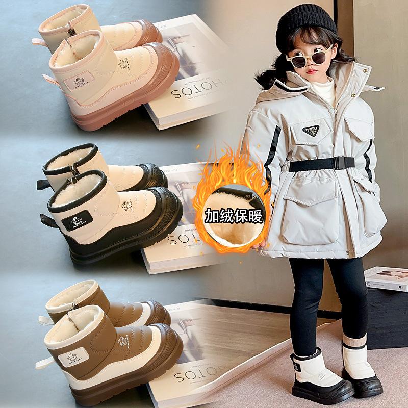 Girls snow boots 2025 new winter children's piled thickened large cotton shoes girls warm winter boots boys cotton boots