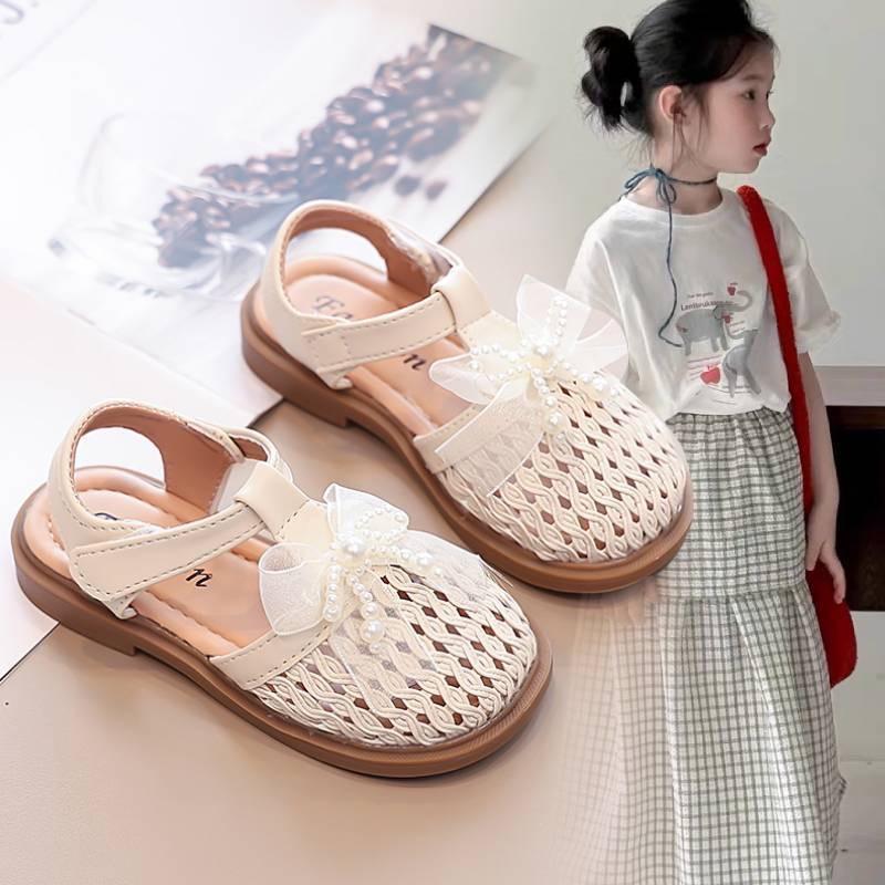 Girls sandals 2025 summer new children's princess shoes girls bag head beach shoes fashion bow woven sandals