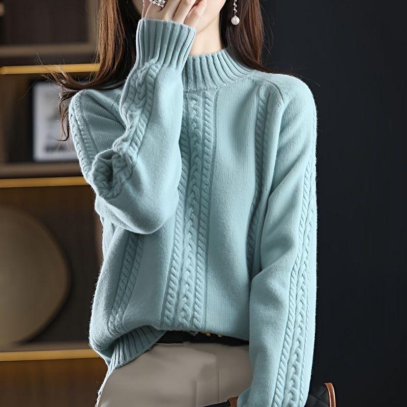 Suéter de Punto Trenzado para Mujer Otoño Invierno Suéter Grueso de Color Sólido Suéter Jersey Casual Holgado Adelgazante Suéter de Punto