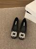 Square buckle ladle shoes women's commuting versatile single shoes French rhinestone shallow mouth flats 2025 new spring and autumn one-pedal