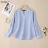 ZANZEA Women Casual V-Neck Loose Long Sleeve Stripe Blouse