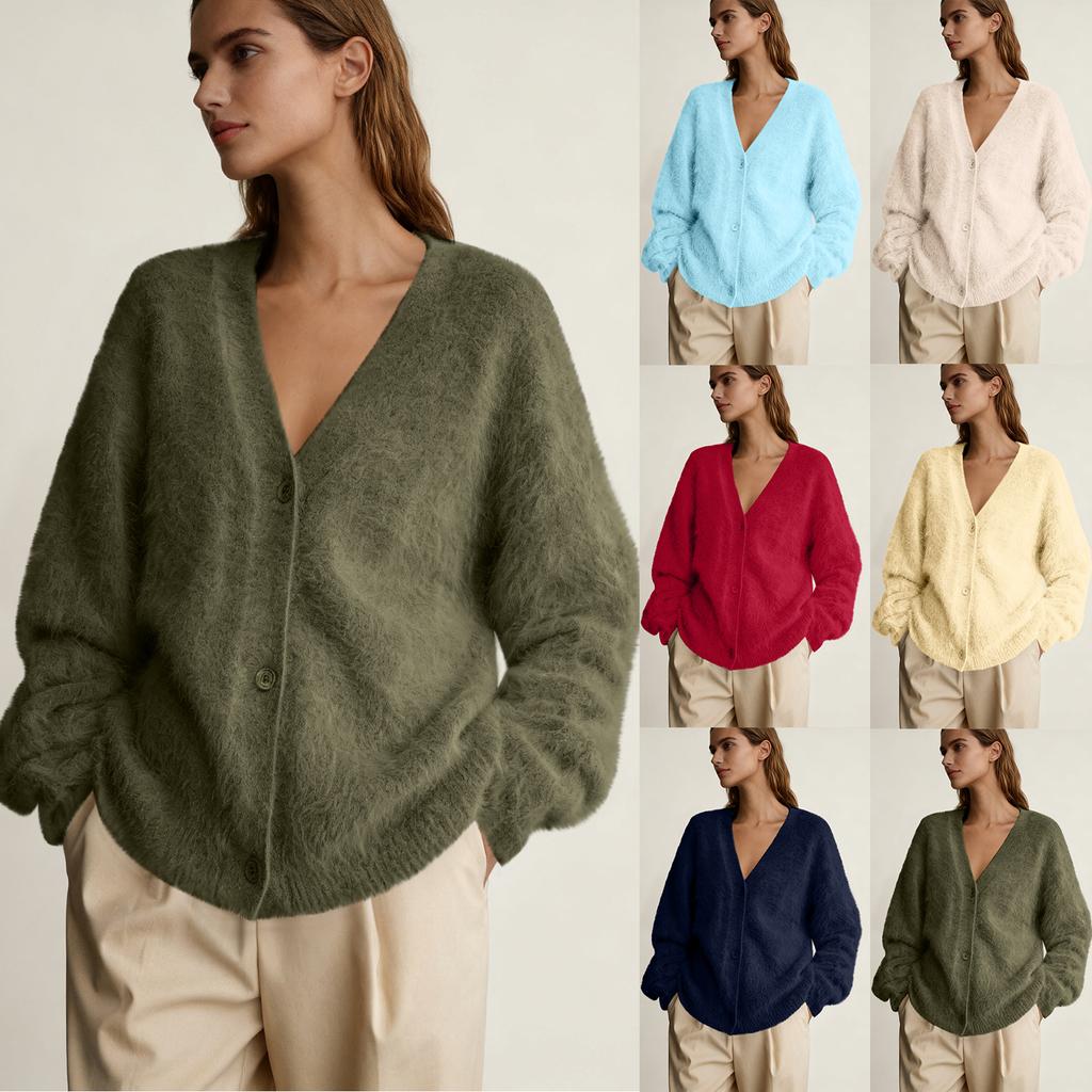 Cárdigans Shaggy Oversize para Mujer Moda Otoño Cárdigans de Punto de Manga Larga con Botones de Frente Abierto