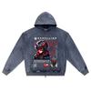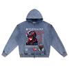 DTG print Knitted Denim Zip-Up Hoodie Manga Graphic Brother Print Zipper Hoodies