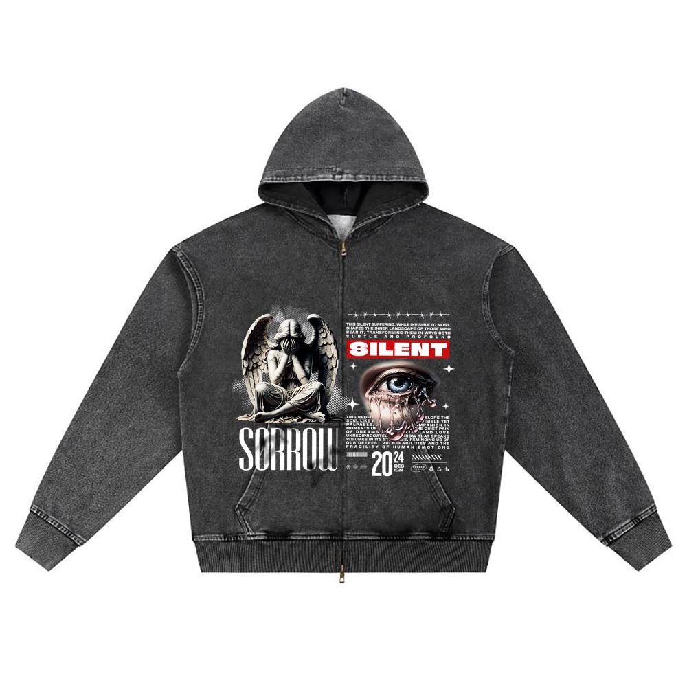 Impresión DTG Sudadera con Cremallera de Mezclilla Tejida Streetwear Ángel Estampado Hermano Sudaderas con Cremallera