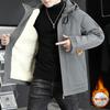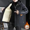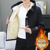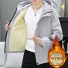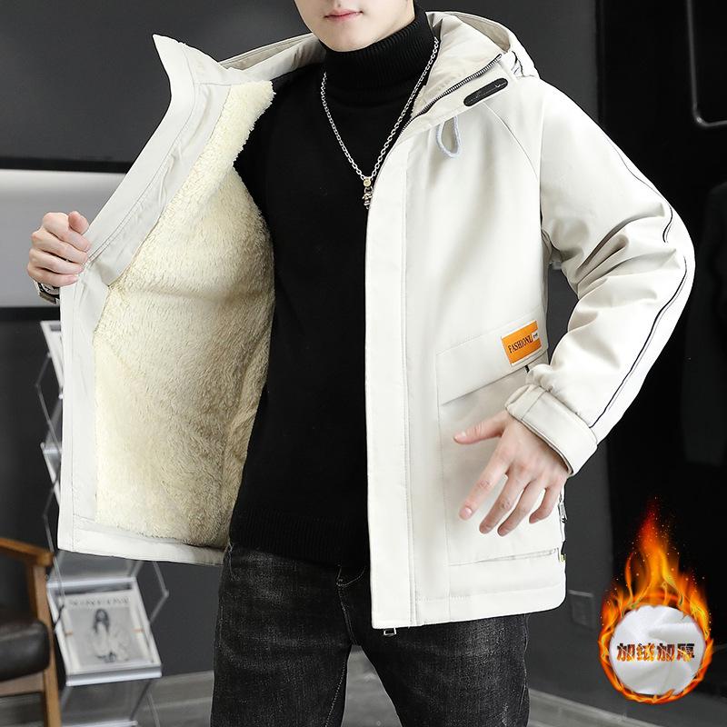 Tooling jacket men's autumn and winter fleece thickened handsome hooded jacket trendy windproof casual teen pie overcome