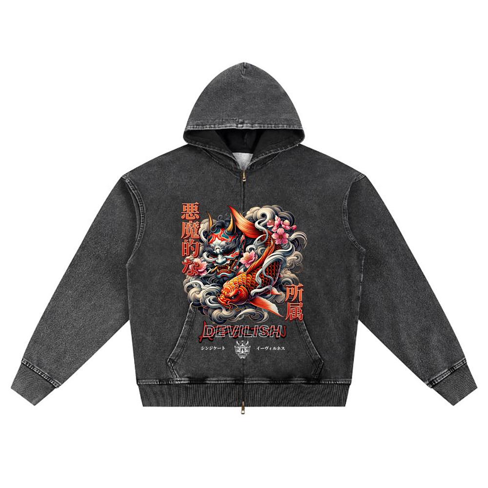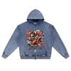 DTG print Knitted Denim Zip-Up Hoodie Japan Samurai Brother Print Zipper Hoodies