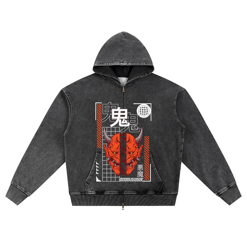 DTG print Knitted Denim Zip-Up Hoodie japanese_streetwear 4 Brother Print Zipper Hoodies