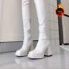 Sal con estilo y comodidad con estas botas altas para mujer de la Colección Otoño/Invierno. Diseñadas con un tacón grueso y una punta cuadrada de moda, estas botas cuentan con una suela de goma gruesa para una excelente tracción y durabilidad.. La parte superior está confeccionada en poliuretano de alta calidad, ofreciendo un aspecto elegante y sofisticado, mientras que el cierre de cremallera garantiza una fácil colocación.. Por dentro, las botas están forradas con felpa artificial suave, proporcionando calidez y comodidad para los meses más fríos.. La plantilla, también hecha de felpa artificial, añade una capa extra de comodidad, haciendo que estas botas sean perfectas para llevar todo el día.