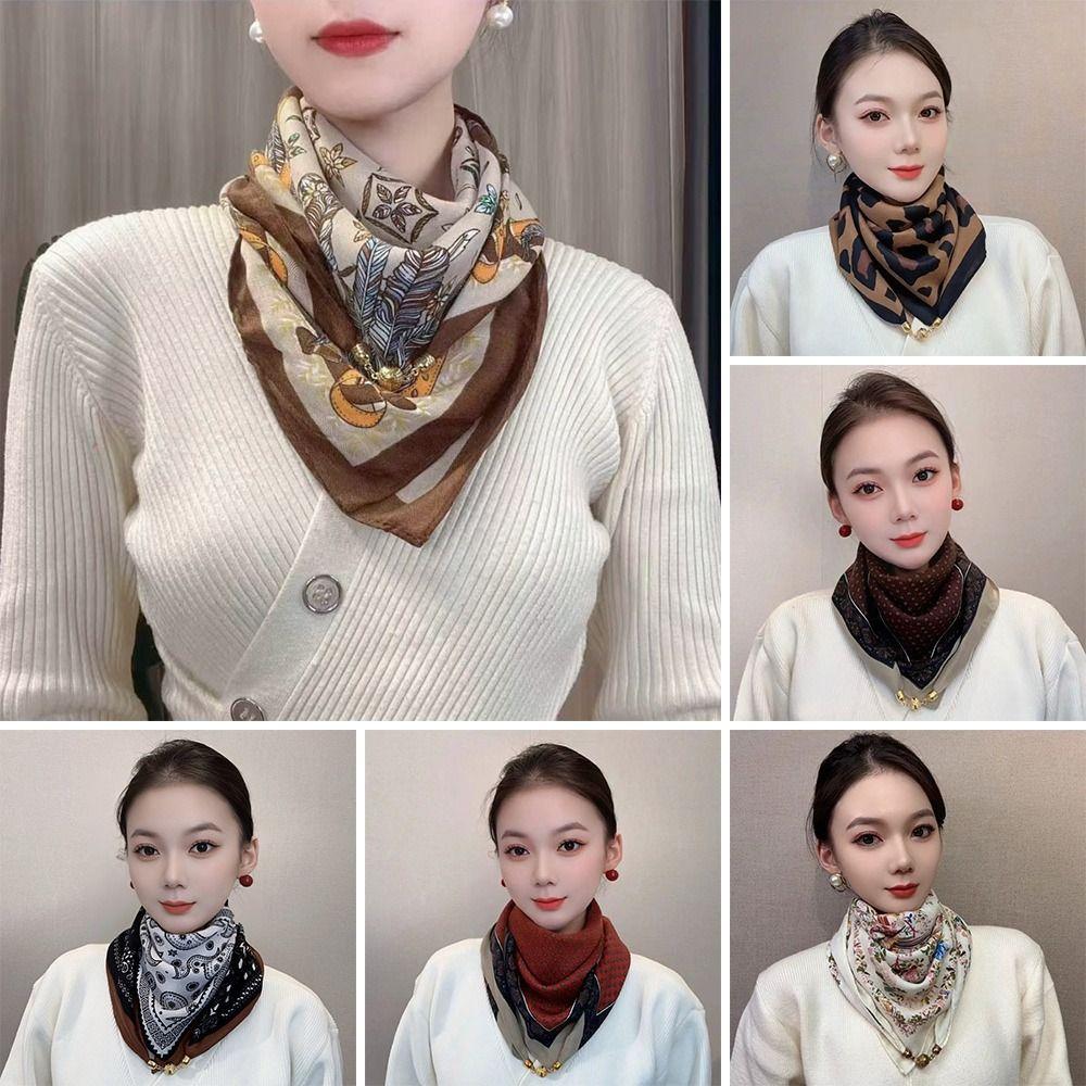 Soft Winter Silk Scarf Warm Small Square Scarf Fashion Magnetic Buckle Scarf Women
