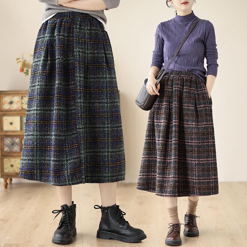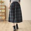 Falda de Lana Otoño e Invierno Temperamento Cuadros Lana Falda Larga Falda Slim Acampanada