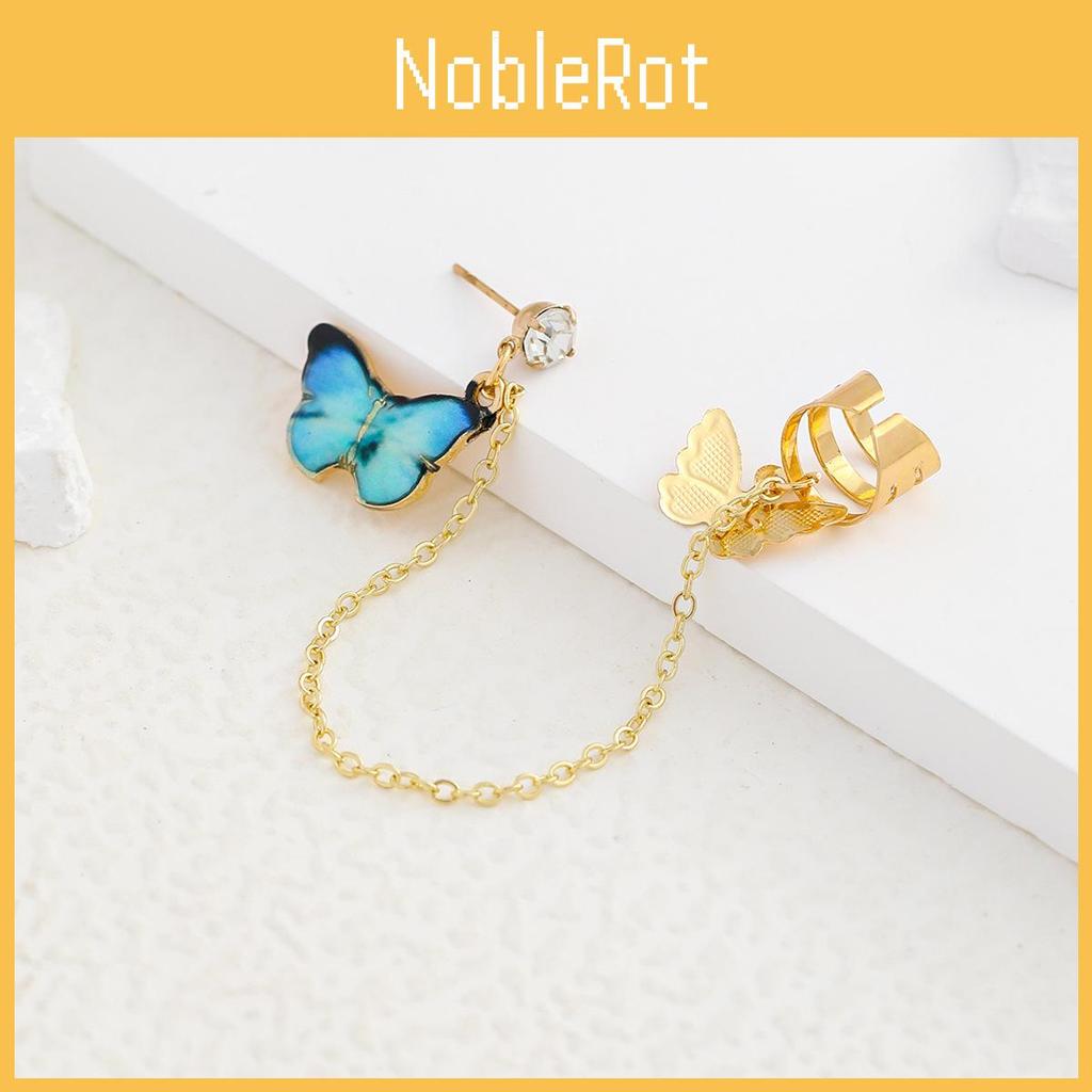 These butterfly earrings come in three captivating colors: Peacock Blue, Peach, and Yellow. Each hue is thoughtfully chosen to complement a variety of skin tones and outfit choices, making these earrings versatile pieces that can transition smoothly from casual daywear to an elegant evening look. The added touch of artificial gemstones or semi-precious stones set in an alloy base provides a layer of sophistication and sparkle, perfect for making a statement. The simple yet stylish chain earring clip design ensures they stay comfortably and securely in place, allowing you to wear them all day with confidence.
