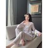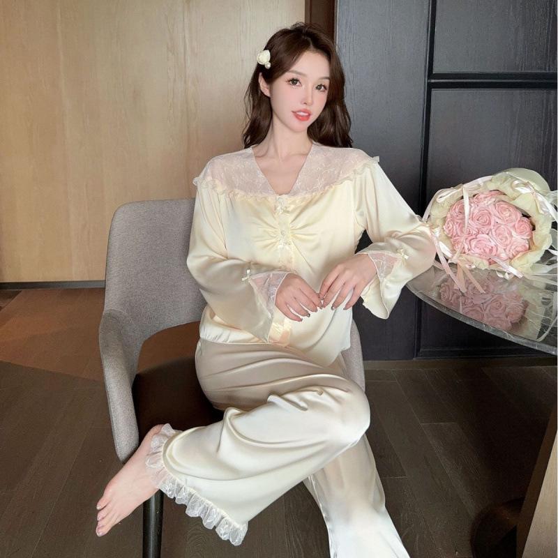 2025 Satin French Pajamas: Women's Ice Silk Long Sleeve & Pants Sweet Style Homewear Set