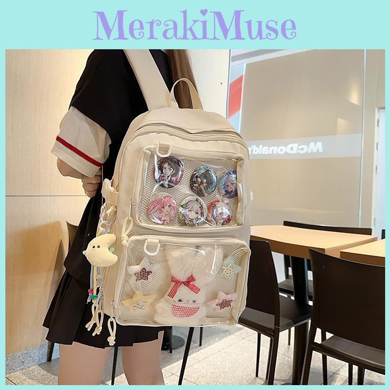 Simple Color Solid Large Capacity Student Backpack With Pendant Badge And