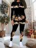 Conjunto de dos piezas con estampado de purpurina para mujer: Top y Pantalones de Manga Larga con Cuello Redondo, Traje de Regalo para Fiesta Casual Limitado de Vacaciones