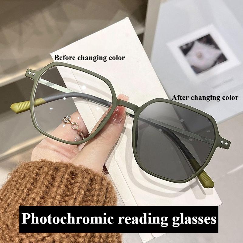 Fashionable Ultra Light Photochromic Reading Glasses with Large Frame and Anti Blue Light for Elderly People in Reading Glasses