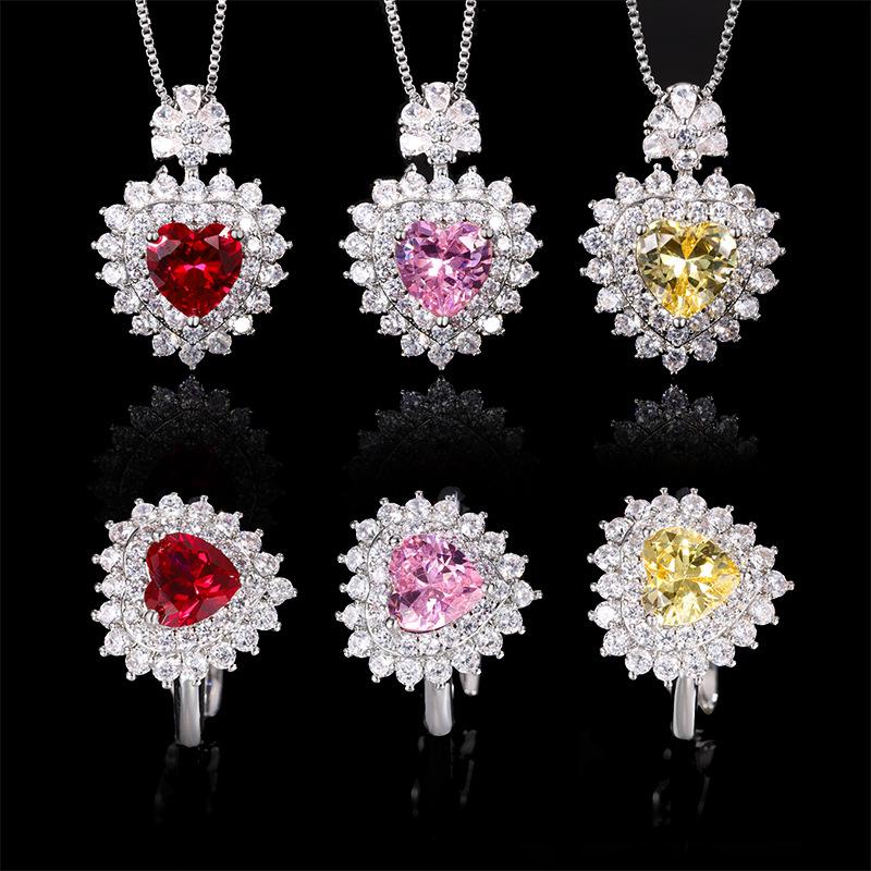Jewelry Copper Bottom Gold-Plated Simulation Red Corundum Heart-Shaped Temperament Set Heroine Stone 8 * 8