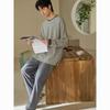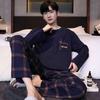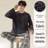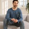 Men's Antibacterial Long Sleeve Pajamas Set - Round Neck, Casual, Two-Piece, for Spring/Fall/Winter.