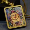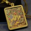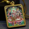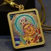 Yellow Jambhala Mahakala Thangka Pendant - Hand-painted Tibetan Gau with Eight Guardian Wealth Deities.