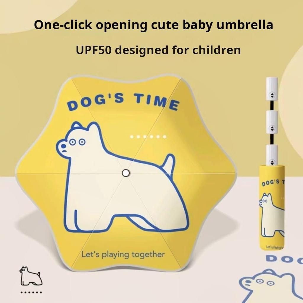 3-Fold Auto Open Safety Kids Umbrella with Glow-in-the-Dark Rounded Corners for Sun & Rain Protection