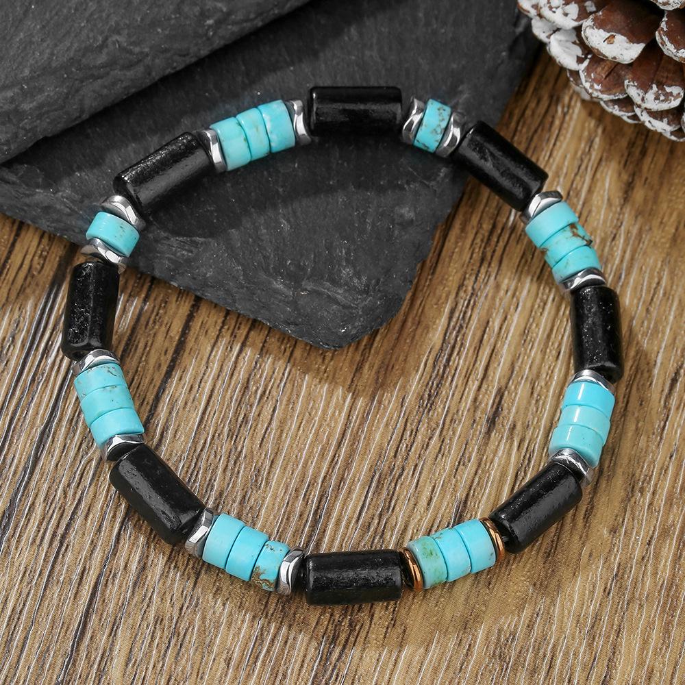 Men’s Turquoise Wood Bead Elastic Bracelet