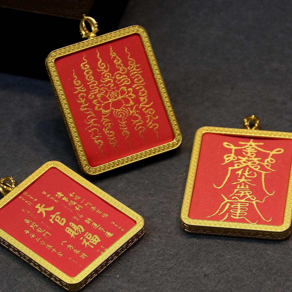 Colgante Thangka Tibetano Tian Guan Ci Fu - Diseño Dorado Hecho a Mano para Protección del Año Tai Sui