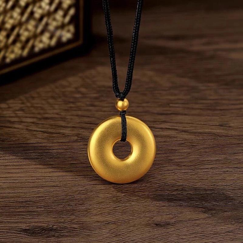 High-Quality Simulated Gold Ring and Peace Buckle Pendant Necklace with Ancient Sand Gold Finish for Men and Women