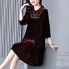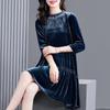 Women's Gold Velvet Dress Spring Autumn Round Neck Solid A Line Dress Midi Length Dresses