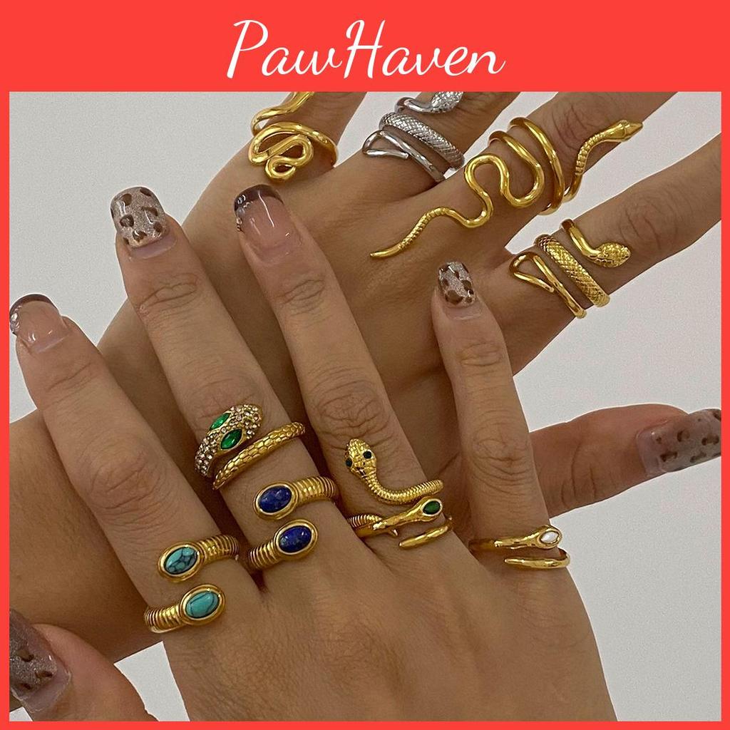 Highlights: Unique Open Design: This ring features a stunning open design that captures attention and adds a modern touch to any outfit. Durable Material: Made from high-quality stainless steel, this ring is not only stylish but also resistant to tarnishing and wear, ensuring long-lasting beauty. Trendy Geometric Style: The geometric shape and snake motif offer a trendy aesthetic that is perfect for fashion-forward women looking to enhance their accessory collection.