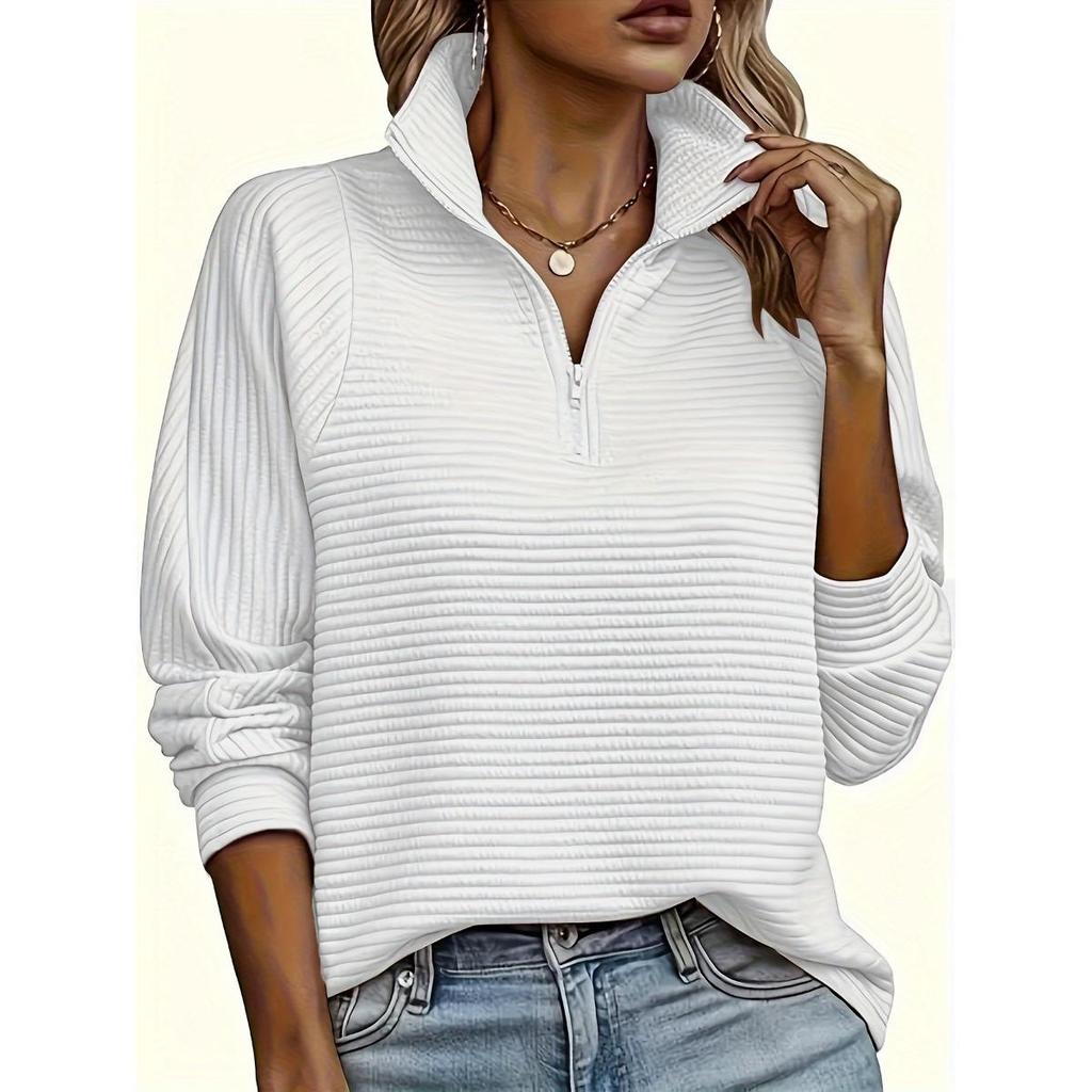 Suéter Casual de Punto con Cremallera para Mujer, Jersey Holgado de Manga Larga con Cuello en V, Color Puro, Adecuado para Usar en Primavera y Otoño, Bajo Regular