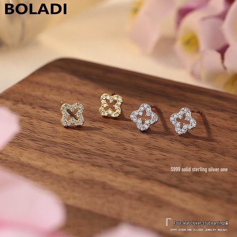 Sterling Silver Four-Leaf Clover Stud Earrings for Women - Comfortable for Sleeping