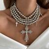 Collar Multicapa de Cruz con Incrustaciones de Diamantes de Celebridad de Internet, Collar con Cuentas Redondas CCB, Lujoso Ligero Exagerado para Dama