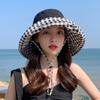 Sombrero de Sol de Moda Modelos Femeninos Se Puede Doblar Verano Ala Grande Protector Solar Sombrero de Sol Para Cubrir la Cara Sombrero de Pescador a Cuadros Sub