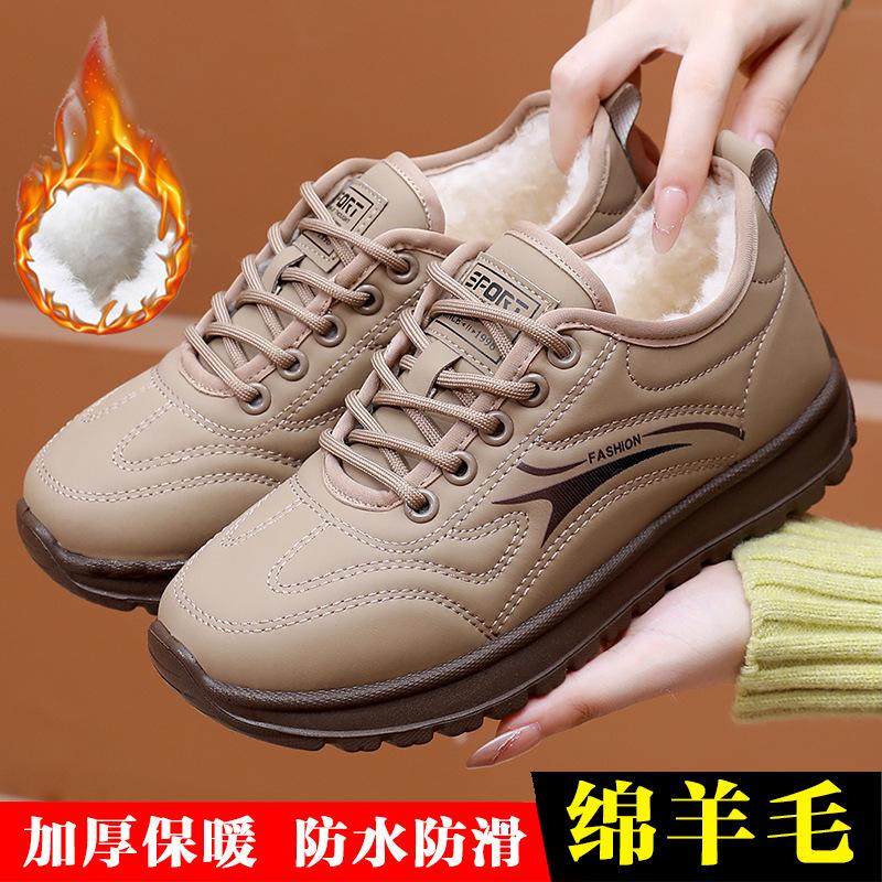 2025 shoes women's winter new women's walking shoes cotton boots velvet warm women's short boots comfortable mother shoes