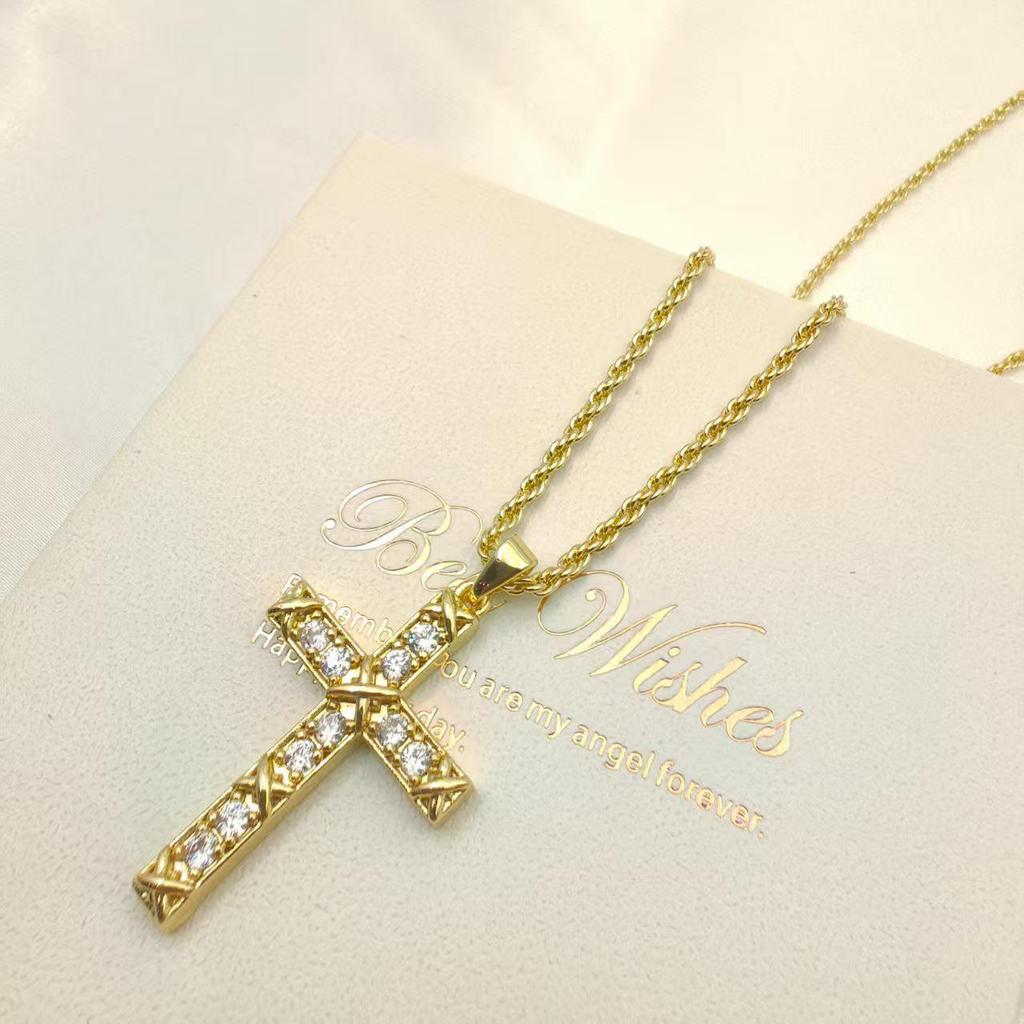 Colgante de Cruz de Circonita de Cobre para Mujer - Accesorio de Joyería Religiosa Versátil