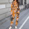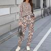 Conjuntos para mujer de 2 piezas Camisetas de manga larga con cuello redondo Pantalones deportivos estampados Conjuntos con bolsillos