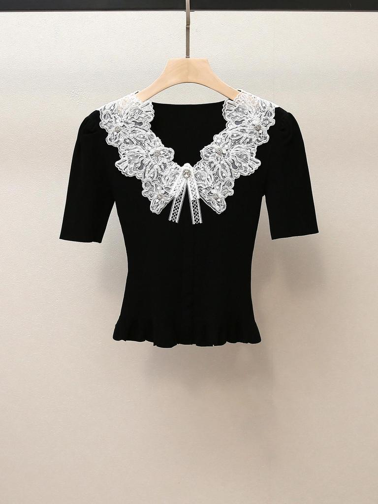 Elegant Autumn Lace Patchwork Sweater - Women's Slim Short Knit