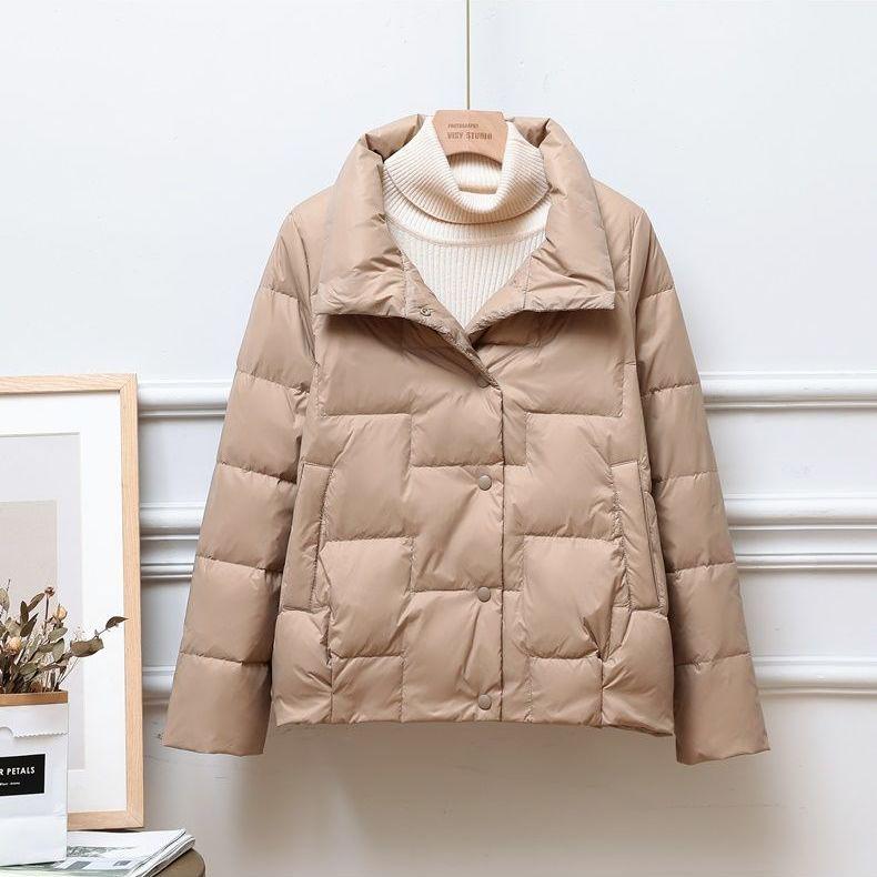 Women's Lightweight Down Jacket - Casual Large Lapel Stand Collar Short Coat for Autumn & Winter