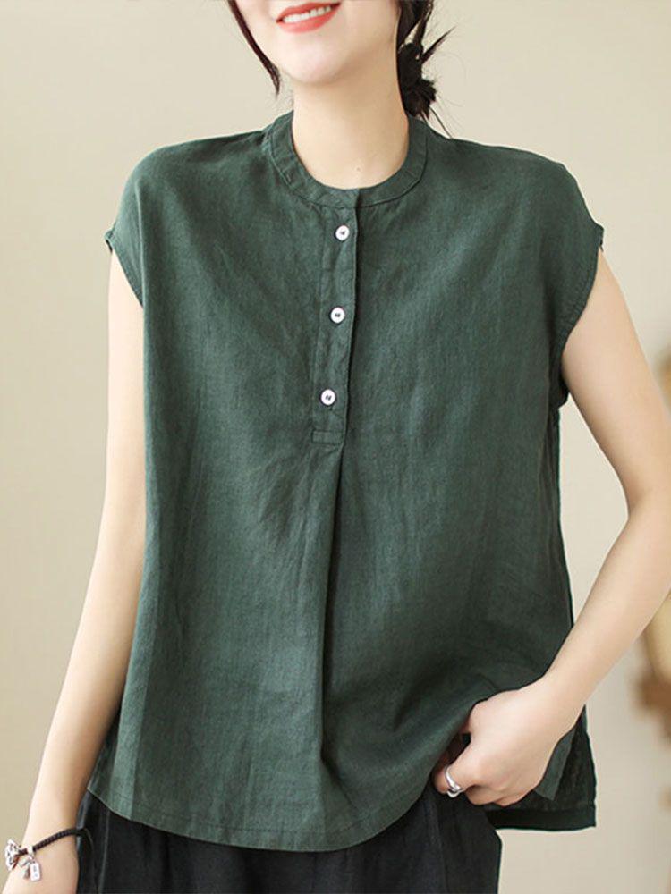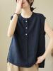 Discover comfort and style with this Women's Plus Size Linen Cotton Sleeveless Summer Top, designed specifically for middle-aged and elderly women. Crafted from a breathable blend of cotton and linen, this top features a loose fit that allows for ease of movement and keeps you cool in warm weather. The sleeveless design and stand neckline add a touch of elegance, making it a versatile addition to your summer wardrobe. Perfect for casual outings or relaxed home wear, this top ensures you stay stylish and comfortable throughout the season.