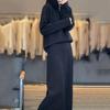 Autumn/Winter 2025 Knitted Zipper High Neck Two-Piece Set with Long-Sleeve Top & Over-the-Knee Skirt