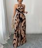 Eleva tu guardarropa con este mono chic y adaptable, diseñado para la mujer moderna que valora tanto el estilo como la comodidad.. Confeccionado en poliéster de alta calidad, este mono halter presenta una favorecedora cintura de corbata y un llamativo estampado, asegurando una mezcla perfecta de elegancia y comodidad.. El diseño de pierna ancha ofrece libertad de movimiento, mientras que los prácticos bolsillos añaden un toque práctico.. Ideal para varias ocasiones, este mono sin mangas es una adición versátil a cualquier conjunto a la moda.