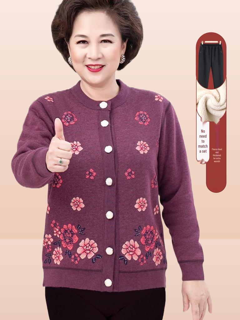 Experience the warmth and comfort of this velvet-lined winter sweater, designed specifically for middle-aged and elderly women. Crafted from durable PVC, this cardigan offers medium outerwear thickness to provide just the right amount of coziness during the colder months. Its elegant round neckline adds a touch of sophistication, making it a perfect choice for both everyday wear and special occasions.