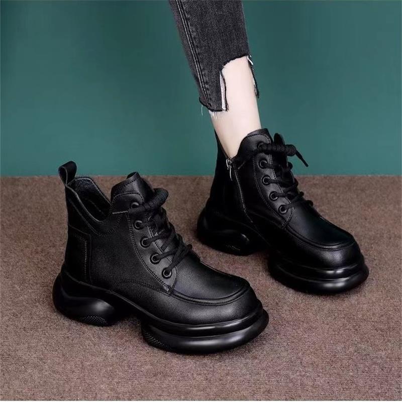 Lace-up Shoes, Thick-soled Height-increasing Boots, Retro Round-toed Slimming, Versatile Women's Boots
