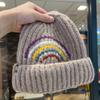 Rainbow Striped Knitted Woolen Hat for Women in Autumn and Winter Versatile Ins Trendy American Style Cold Hat