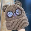 Cute Cartoon Bear Knitted Hat Women's Autumn and Winter New Warm Ear Protective Wool Hat Showing Face Small Pullover Hat Trendy