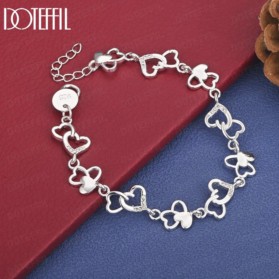 925 Sterling Silver Fashion Gift AAA Zircon Heart Bracelet Wedding Jewelry