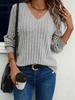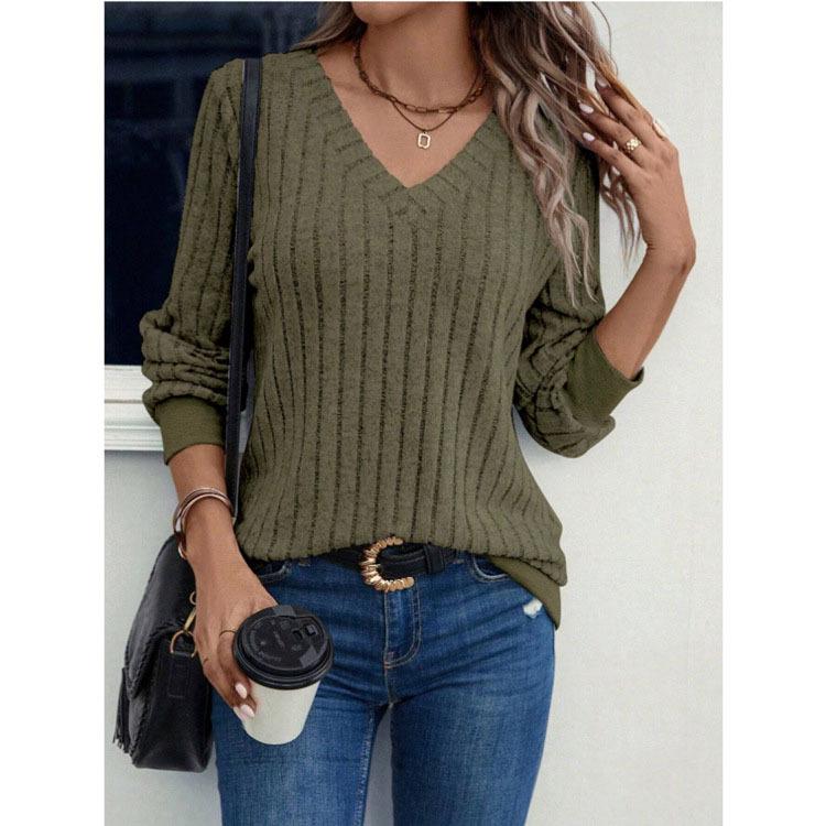 2025 Women's V-neck Long Sleeve Ribbed Knit Pullover - Spring/Autumn European & American Fashion