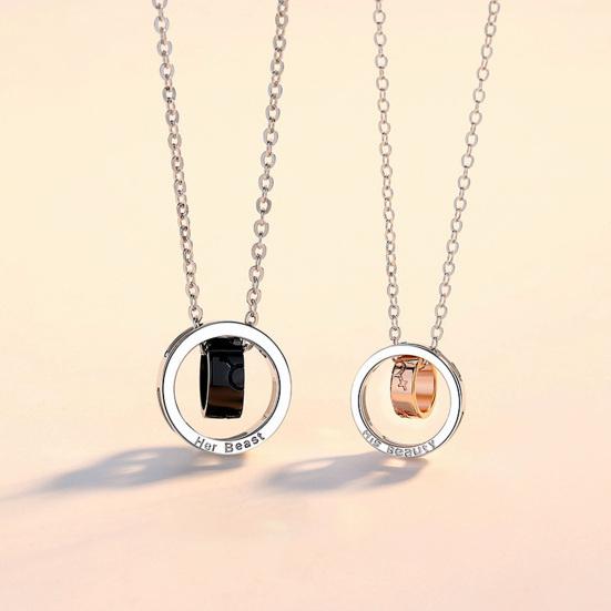 Ring Charm Couple Necklace Dual Rings Pendant Necklace Her Beast His Beauty Alloy Necklace for Valentine's Day Anniversary Birthday Gift