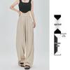 Women's Summer Ice Silk Wide-Leg High-Waist Pants with Pleated Texture, Sun Protection, and A-line Straight Leg Design.