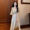 Este exquisito vestido largo está confeccionado con algodón de alta calidad, garantizando comodidad y transpirabilidad durante los meses más cálidos.. Con un elegante diseño de qipao, presenta un volante irregular que añade un toque dulce y estilizado a la silueta.. Perfecto para ocasiones de verano, este vestido combina el encanto tradicional con el estilo moderno, ofreciendo un look elegante y sofisticado.