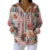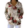 Sudadera con capucha de punto casual para mujer de moda con cremallera y manga larga con estampado navideño